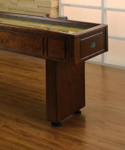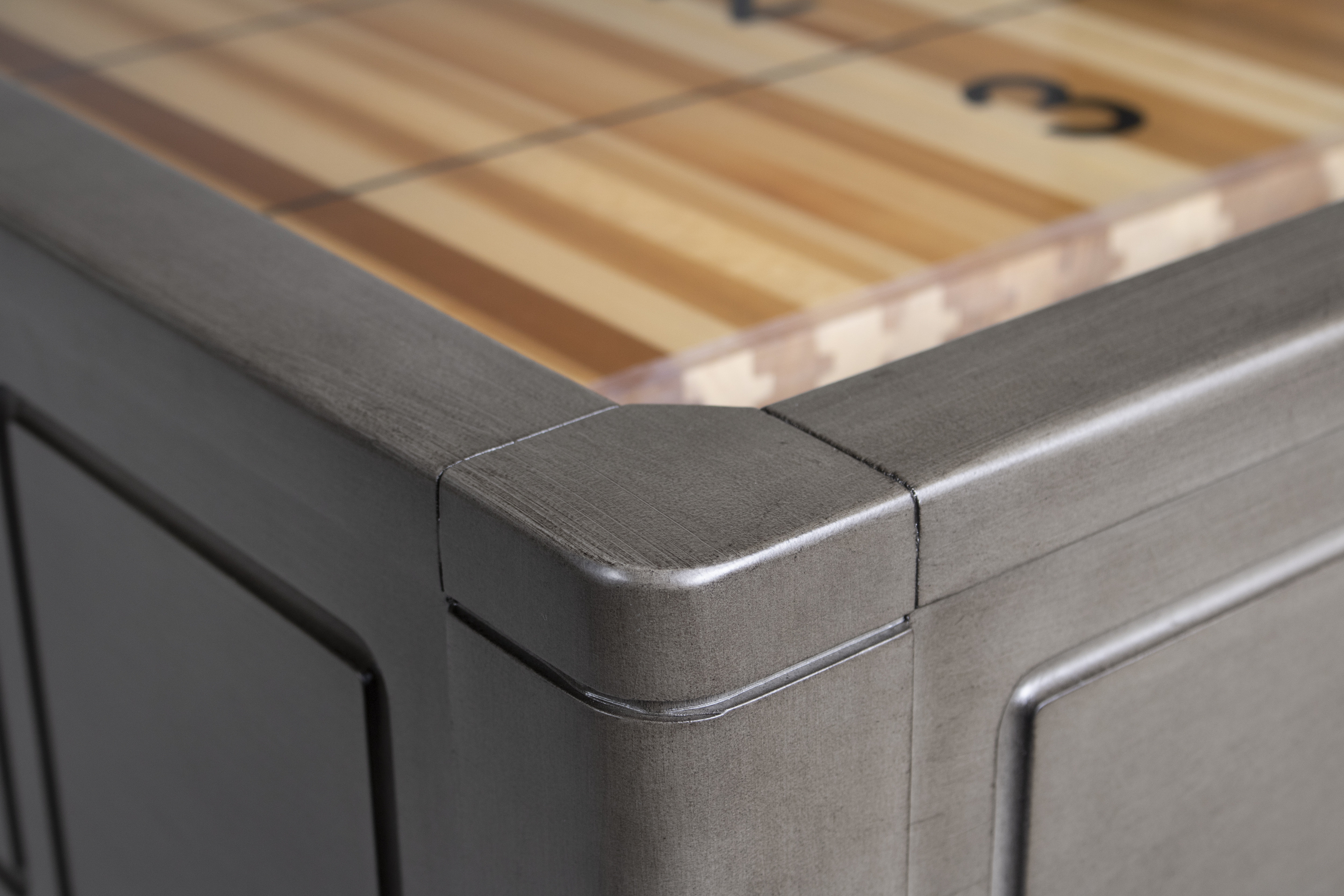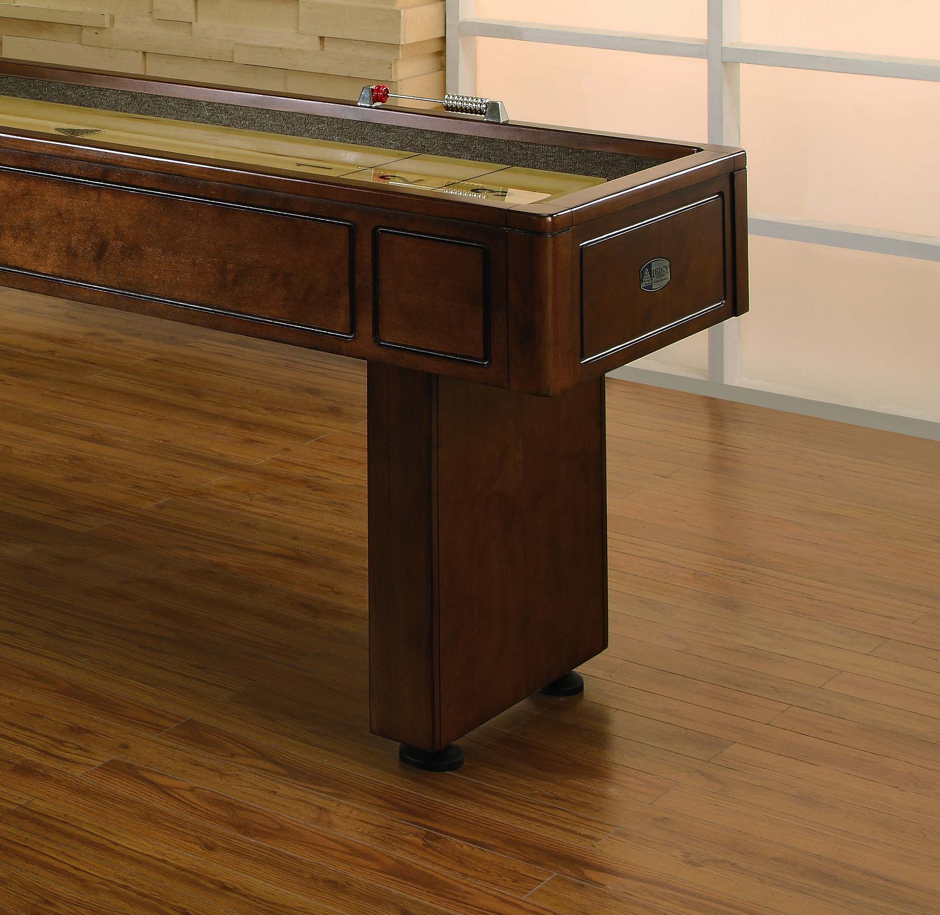 Tailored and trim, the Elite 12 ft Shuffleboard is the game room’s next addition. The Elite is designed with routered wood panels with your choice of either 16″ wide x 2.5″ thick or 20″ wide x 2.5″ thick playfield with 1/4″ polymer playfield made from North American grown poplar. The play surface is sealed with 1/4 inch poured polymer resin for a long lasting durability and lightening quick play. The Elite Shuffleboard’s glide-out Perfect Drawer stores all your shuffleboard accessories conveniently under the table. Legacy Shuffleboard playfields have a lifetime warranty. Legacy recommends purchasing the optional light kit for two overhead lights and the electronic score unit with 3 scoring zones to add to your playing to complete your shuffleboard experience.