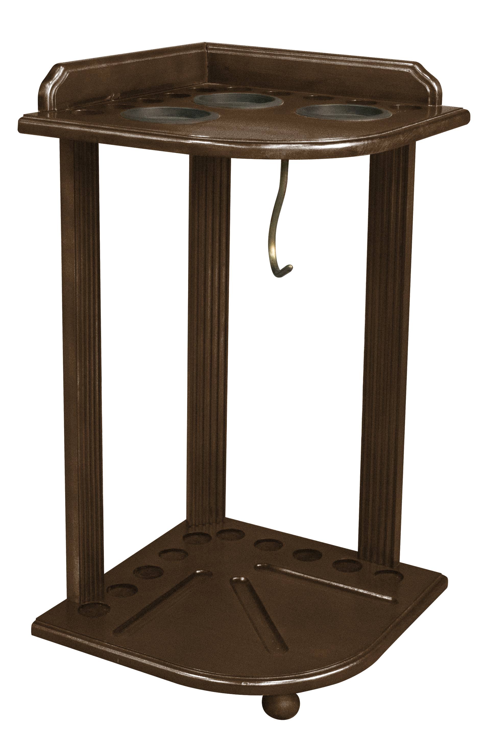 The Heritage Corner Rack is designed with you in mind. Store up to 9 cues, ball rack and balls in the corner out of the way. Recessed cups on top serve as beverage holders or as chalk cups, your choice.
