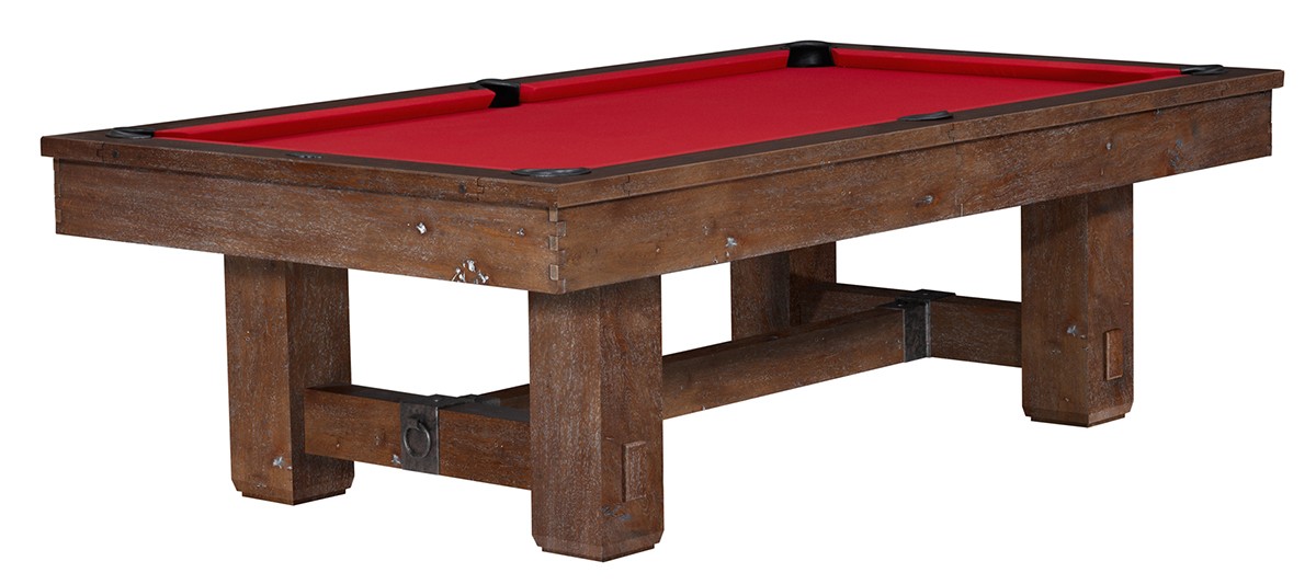 Old World craftsmanship meets velvet-smooth play, courtesy of the Merrimack table. This classic design features hand-hammered metal hardware and distinctive artisan joinery – the ideal complement to a handsome, hand-rubbed antique finish that showcases the natural knots, grain and texture of the table’s rough-hewn wood. These rugged and rustic qualities provide a perfect contrast to the precision, stability and playability built into each table. It’s quality and style you can see, feel and enjoy – inside and out.