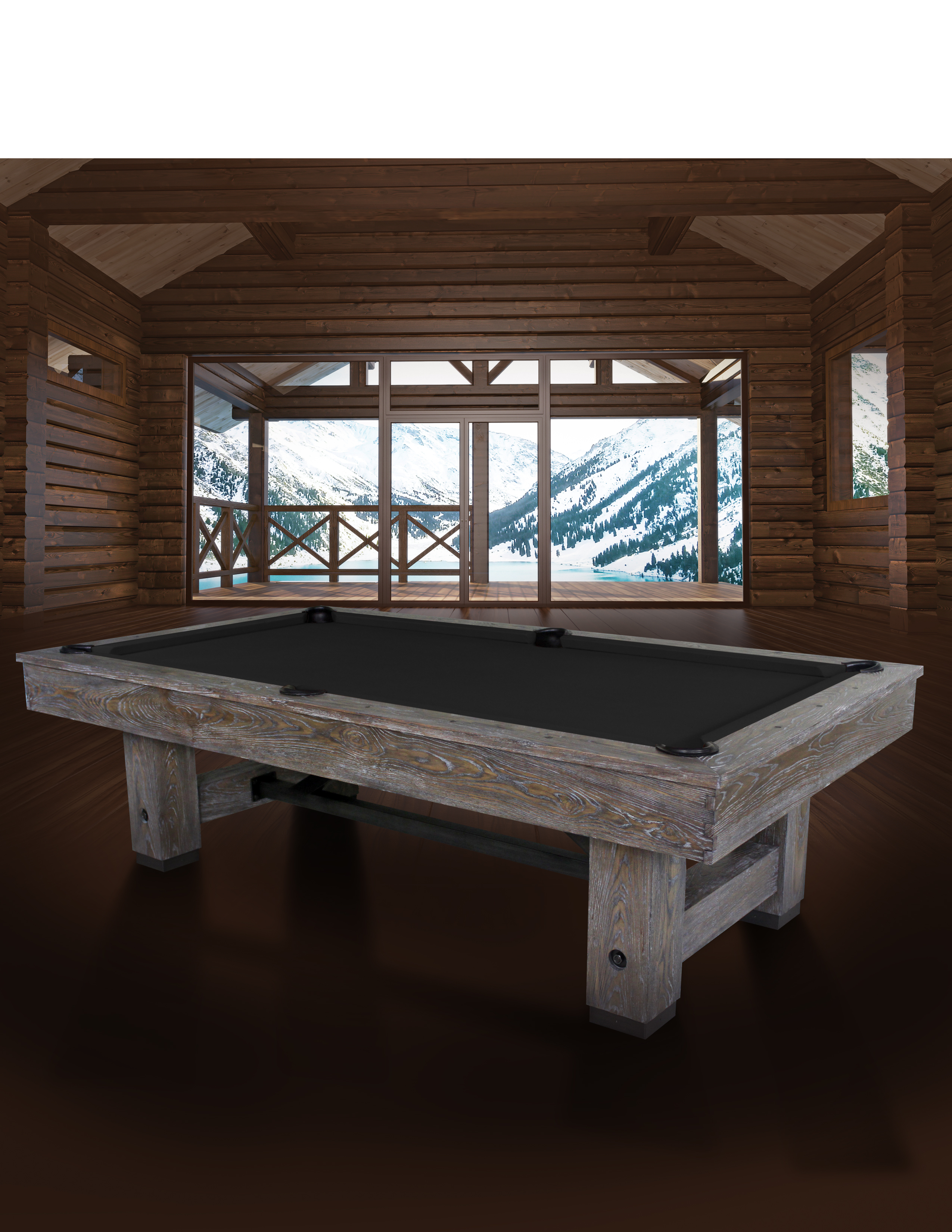 We could go on and on but the picture speaks a thousand words on this rustic & industrial inspired billiard table. Hand crafted with metal components with true finger jointed cabinetry and heavily distressed solid raised grain ash wood. The Cimarron table is not only beautiful to look at but built to last for generations. The Cimarron is available in a grey wash we call “Smoke”. The grey patina adds to the rustic charm.