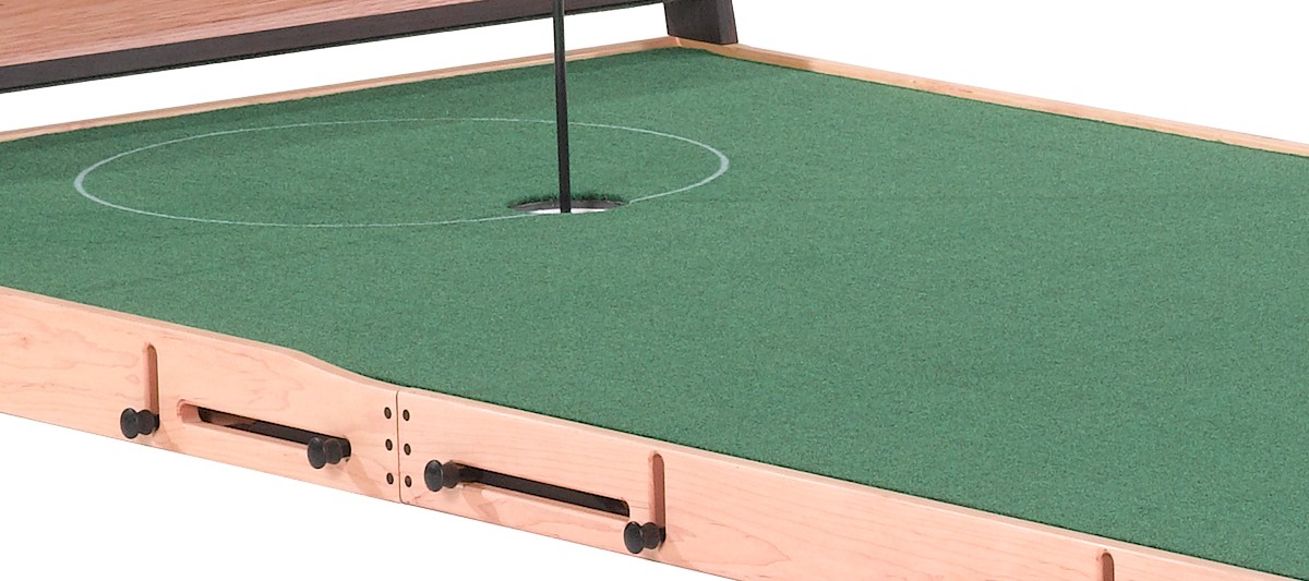 Now you can enjoy all the features of a challenging 12-foot green, without any of the space challenges. The Old Tom measures 3 feet wide by 12 feet long and was designed as a tribute to Old Tom Morris who helped design the world famous St. Andrews, Carnoustie, and Prestwick golf courses. This green includes 6 break stations for up to 50,000 different break combinations, and can be elevated on both ends so you can practice both uphill and downhill putts with ease. The Old Tom comes with one cup, one flag, one side step, as well as a matching putter rack that holds four putters. If you’re looking for a tour quality putting challenge every time, the Old Tom will give you all that and more. Specs: 3′ Wide x 12′ Long
