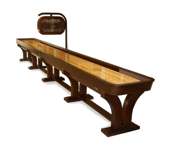 The Venetian Shuffleboard Table combines old world beauty, elegant curves and beautiful finishing with the finest playfield to produce a shuffleboard table that is sure to become a modern classic. The richness of the espresso finish and fine details are just part of the overall picture – choice hardwoods and solid construction ensure a product that will maintain its beauty and provide years of enjoyment.