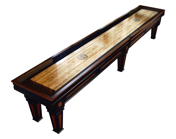The Worthington shuffleboard table is in a class by itself. With hints of an Italian Gothic style the Worthington cabinet captures your attention with the richness of colors like aged black and deep cherry and the strong classical influence of Italy.
